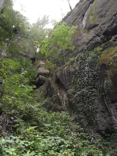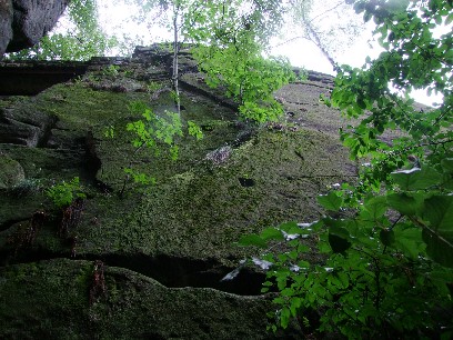 Bemoost und nass, ansonsten hätte man versuchen können, an dieser Wand nach oben zu klettern.