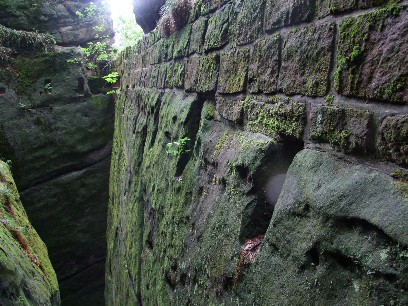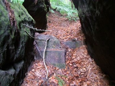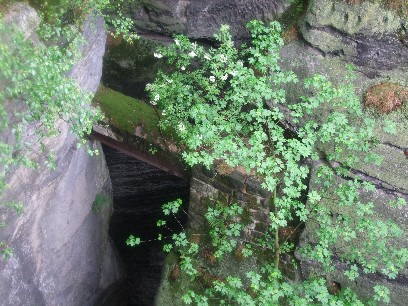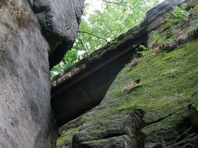 Das ist sie, die ominöse Brücke: Vor dem Eingag zur Vehmhöhle links den Spalt hoch und durch ein Loch gekrochen, das ein großer Stein frei lässt, und man kann das Ganze schon besser sehen!